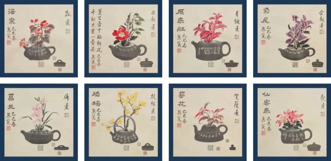 展览部份:将展出由海派绘画大师唐云先生和他的公子著名画家唐逸览先生,他们父子俩在曼生壶水印板上的清雅画作和王心心老师为曼生八壶谱创的工尺谱书法作品。