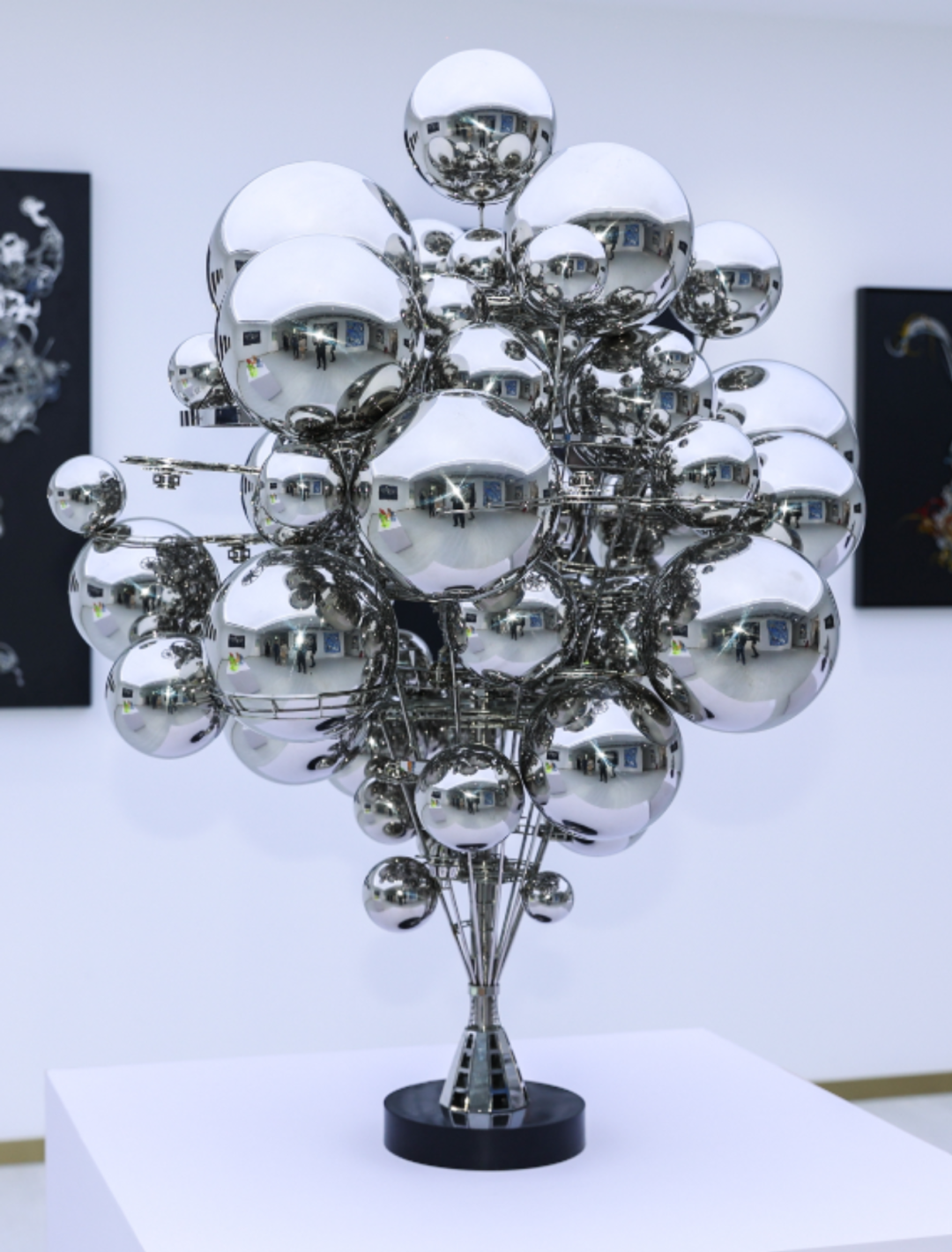 蝴蝶在中国文化中象征蜕变与自由,艺术家夏航将其与现代科技结合,既保留了传统意向的诗意,又赋予其未来感。