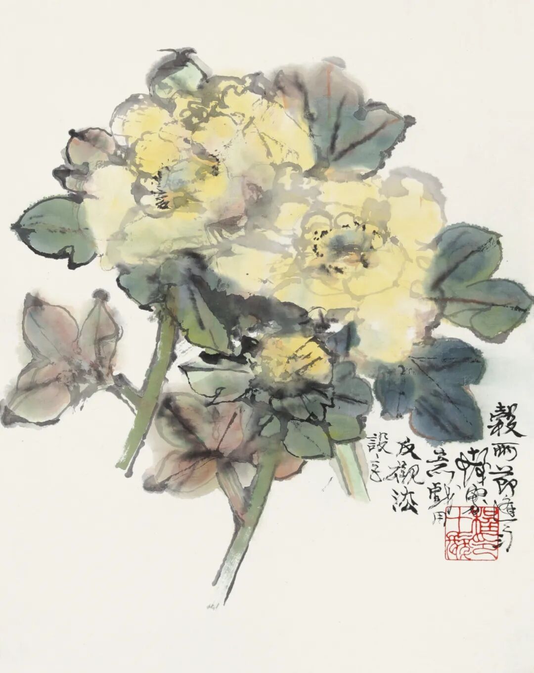 题识:谷雨节逢雨,十髮写意,戏用反衬法设色。
