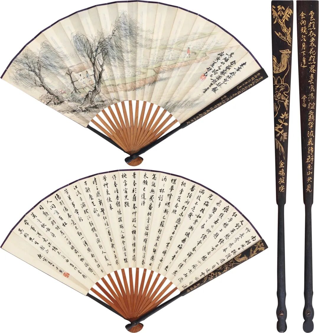 设色纸本/纸本 成扇 1950年作
