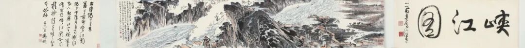 题识:峡江图。一飞贤弟近年两游长江三峡,循其支流,溯源而上,探幽历险穷极胜览,记予昔年经三峡遵江而行,未尝深入。今一飞属予作峡江图,以予所得诚恐不能餍其所望,他日一飞可更为之,自当超乘而上。己未二月,陆俨少记于汤山。