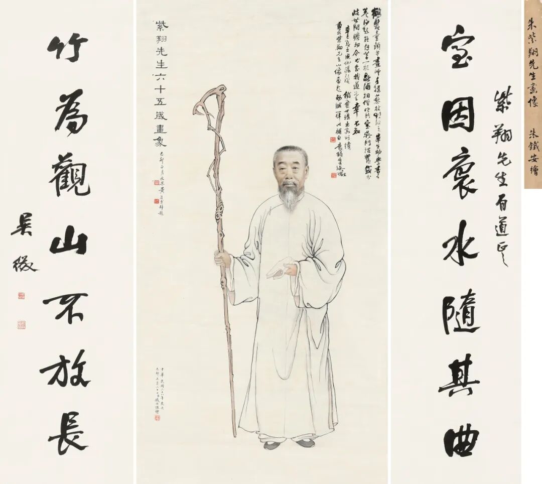 题跋:1.辛巳夏五,避地沪渎,铁盦世讲出其所缋尊公紫翔先生小像属题,勉赋一律以补白,袌鋗居士吴徵。钤印:徵、袌鋗居士