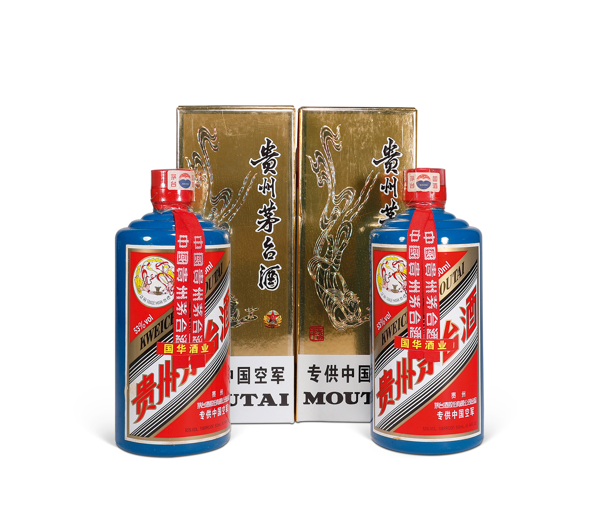 Lot 1803 【收藏珍品】2006年、2007年 贵州茅台酒 蓝瓶(专供原中国空军)带专供酒杯