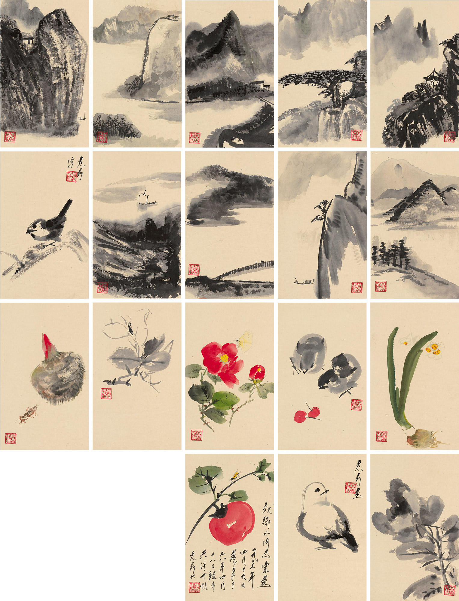 Lot 131 1981年作 翎毛花卉草虫山水册 册页 (十二开) 水墨纸本