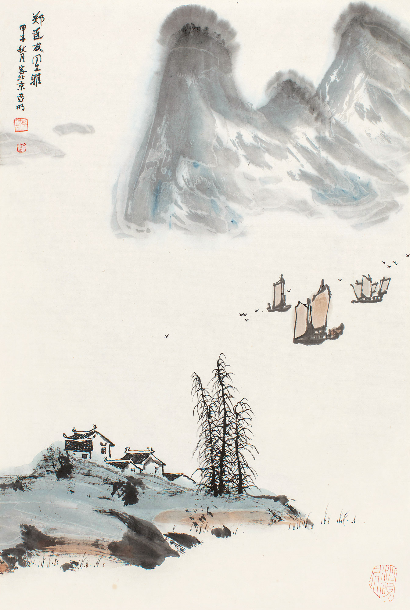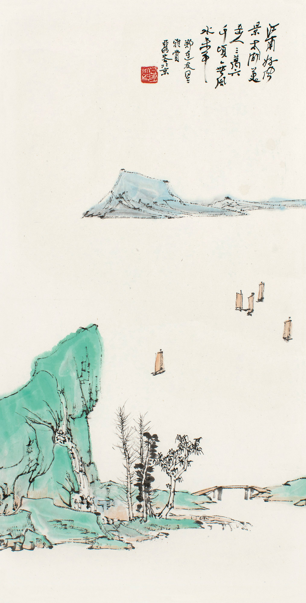 Lot 143 1984年作 江帆图 镜片 设色纸本