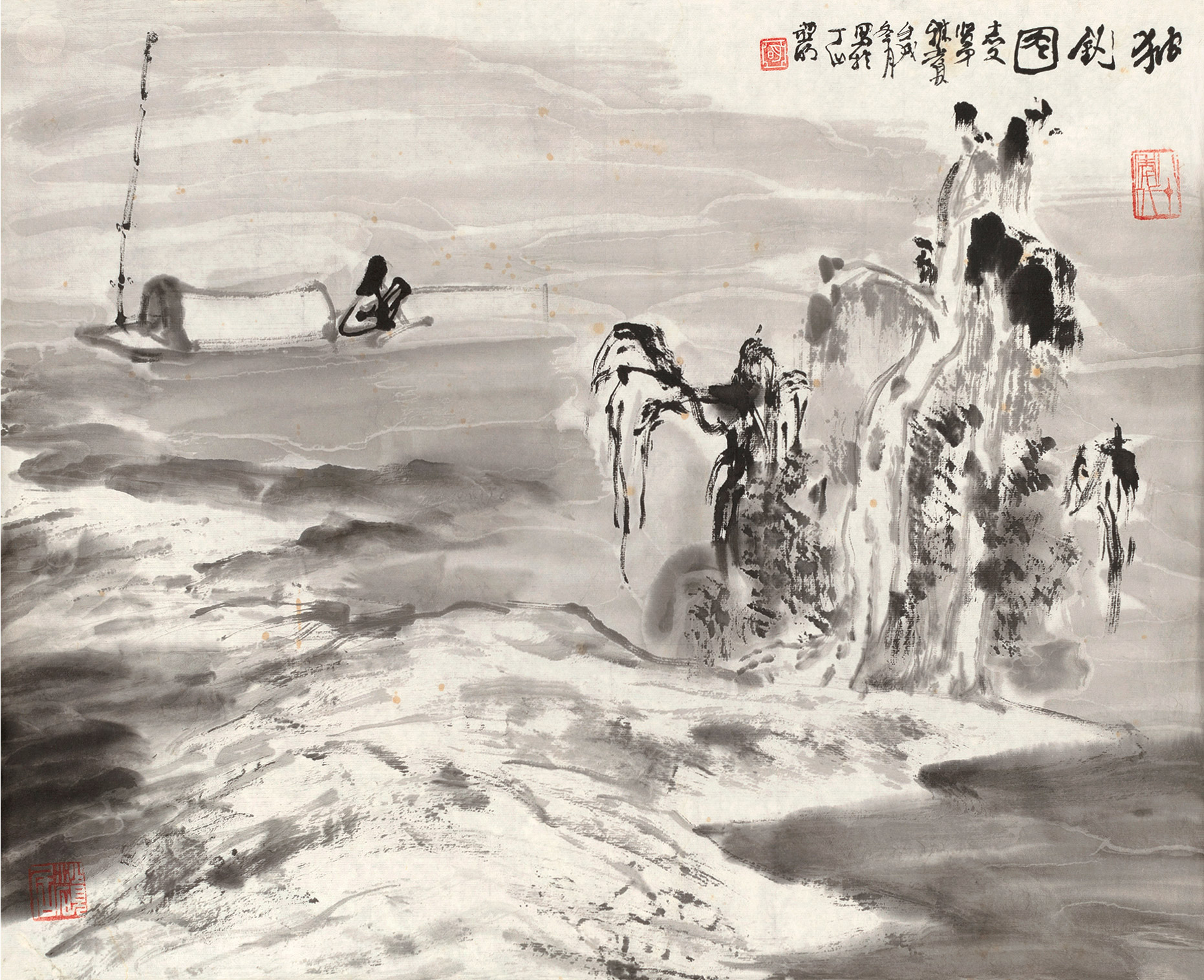 Lot 145 1982年作 独钓图 镜片 水墨纸本