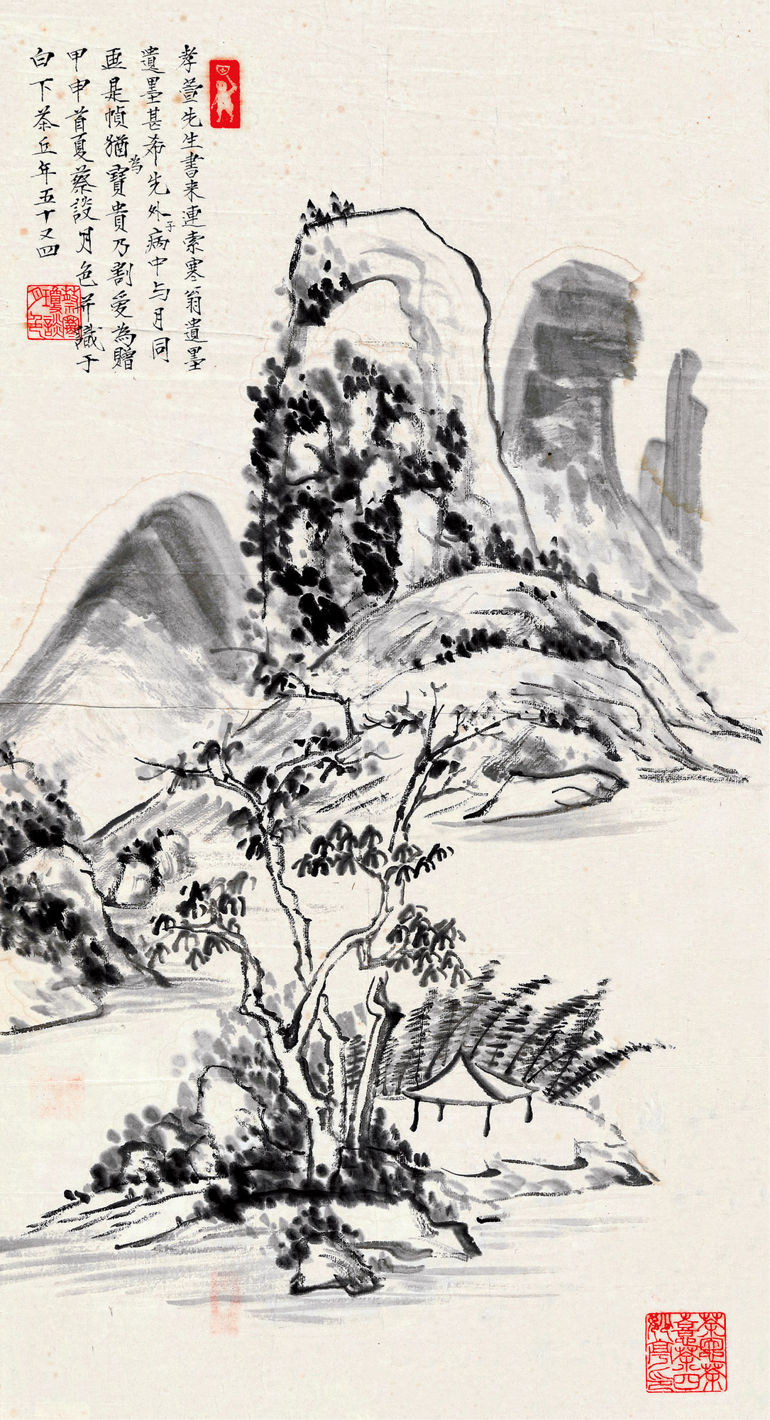 Lot 253 1944年作 山水图 镜框 水墨纸本