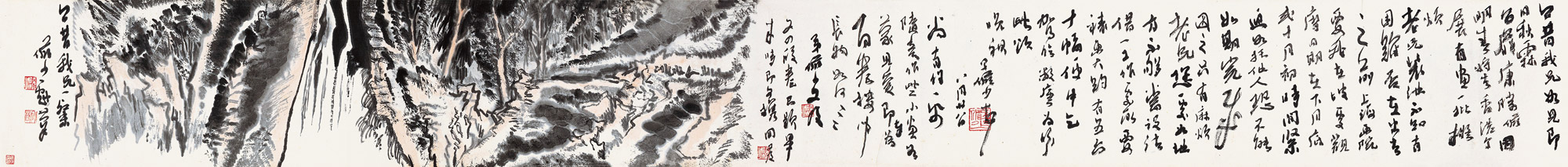 Lot 394 秋林飞瀑 手卷 设色纸本