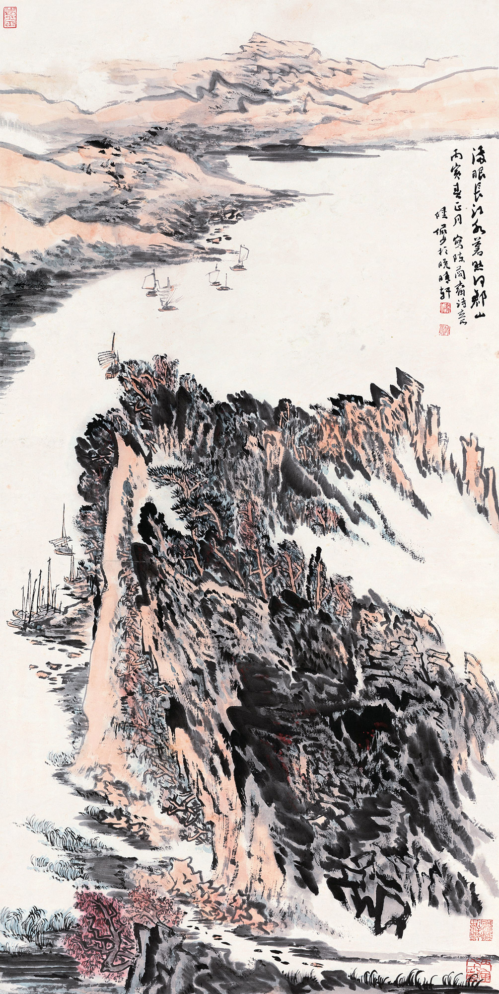 Lot 397 1986年作 江水苍茫 立轴 设色纸本