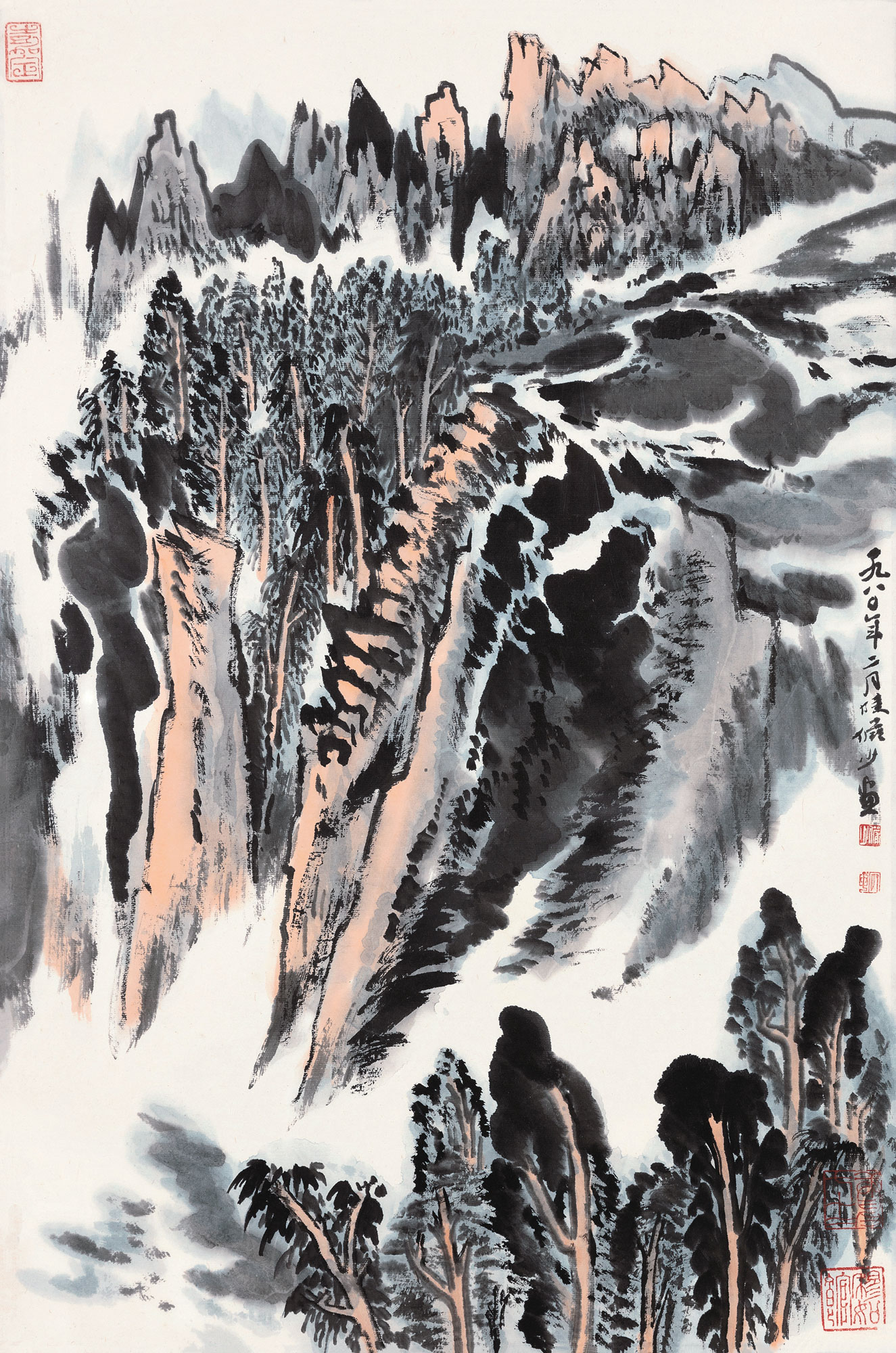 Lot 385 1980年作 千峰云壑 镜框 设色纸本