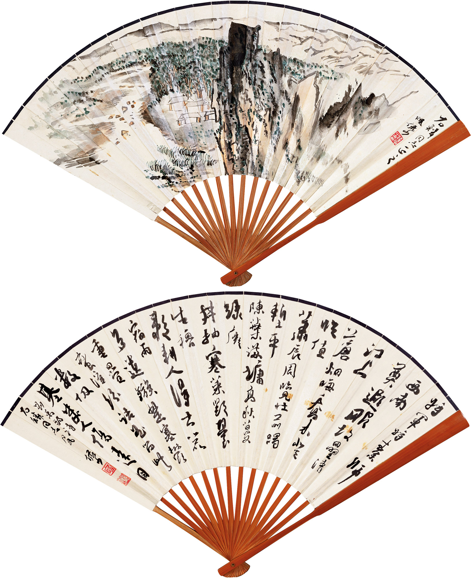 Lot 381 溪山幽居·行书 成扇 设色纸本