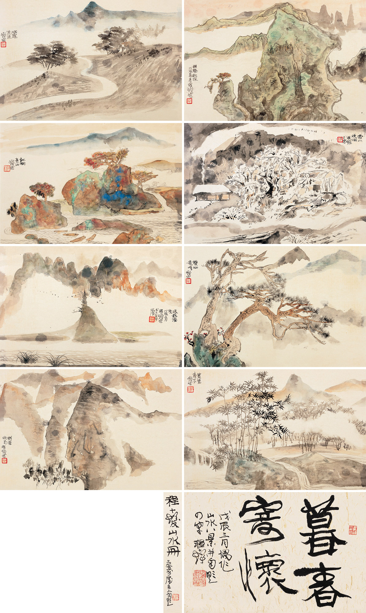 Lot 508 1988年作 山水册 册页 (八开) 设色纸本