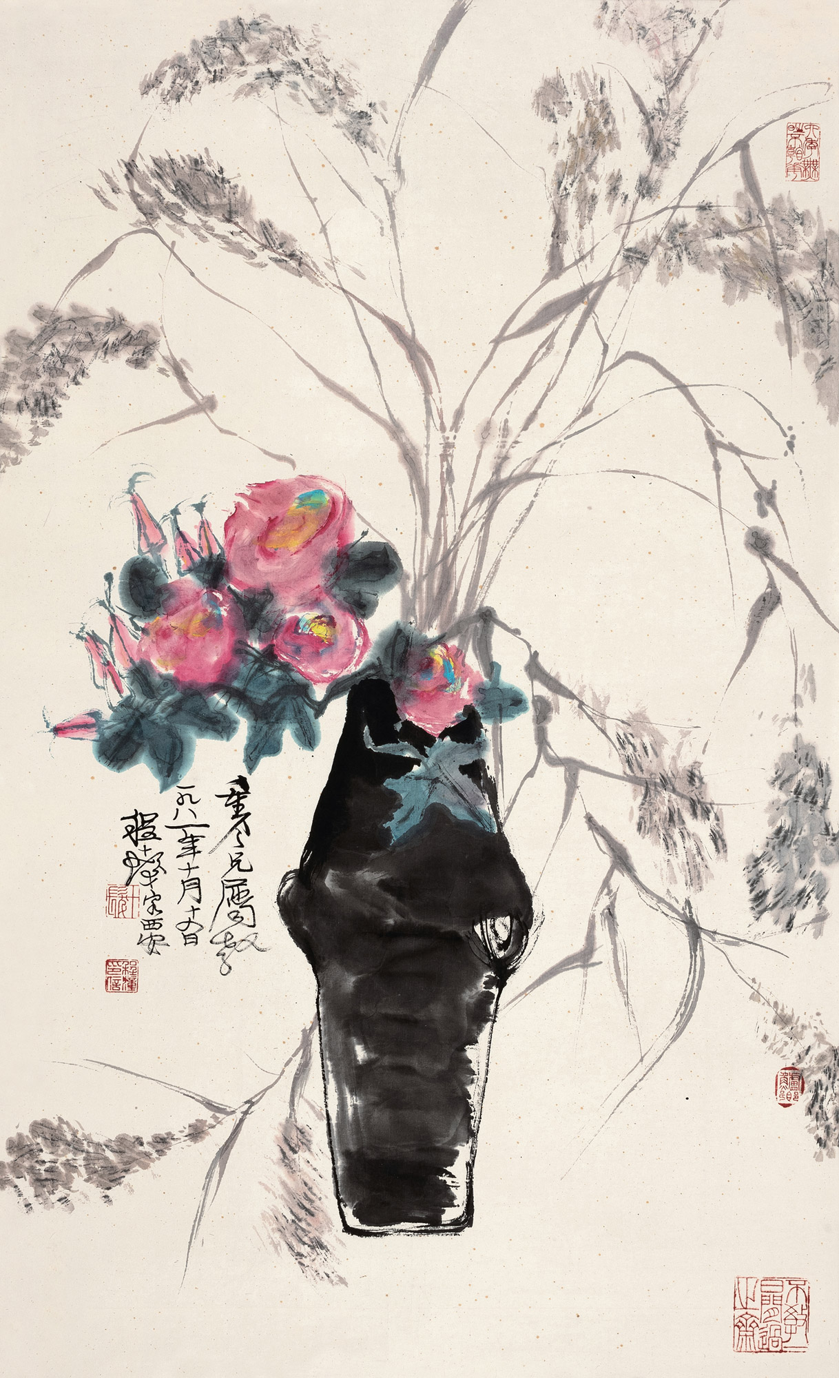 Lot 500 1986年作 瓶花 立轴 设色纸本