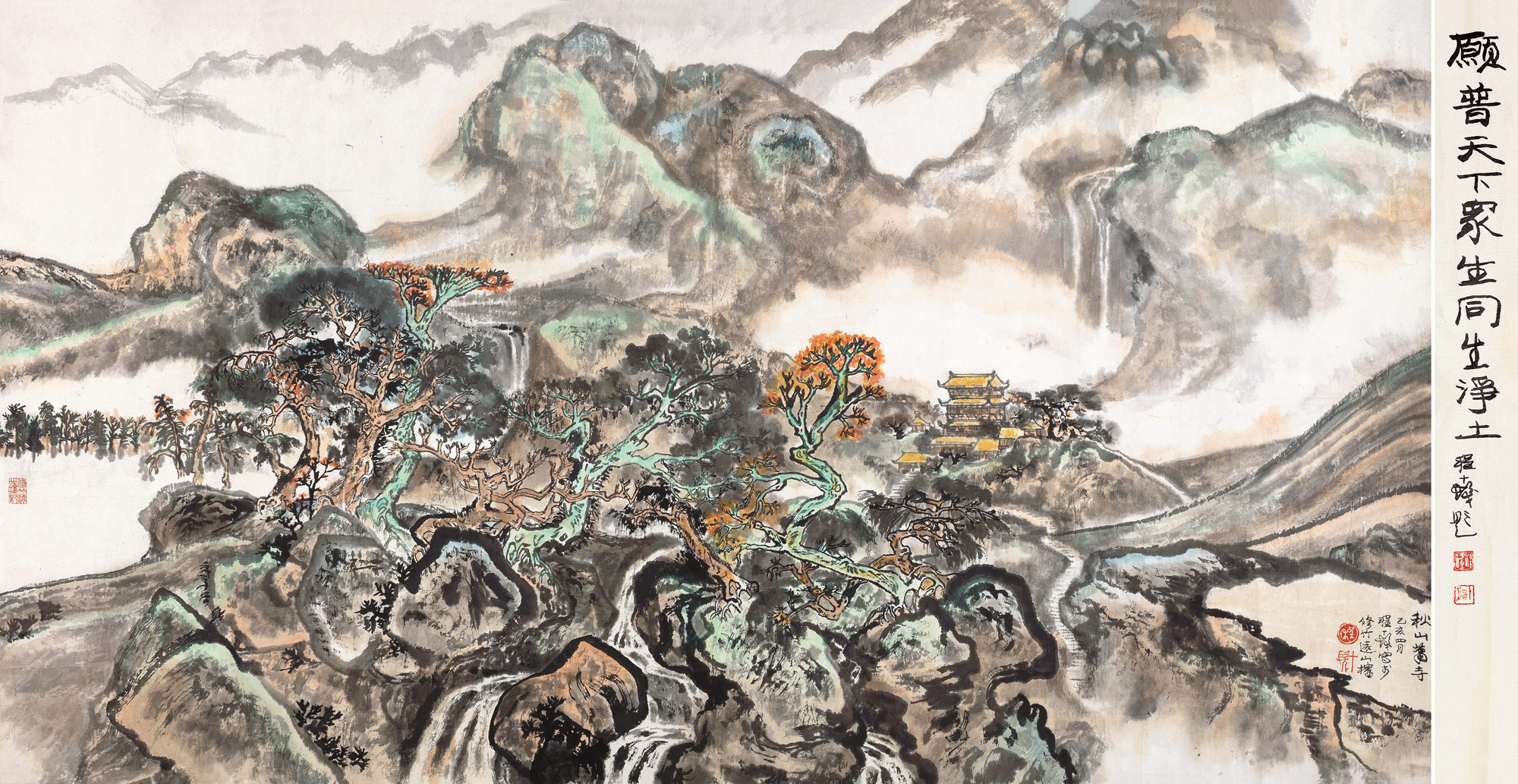 Lot 509 1995年作 秋山萧寺 立轴 设色纸本
