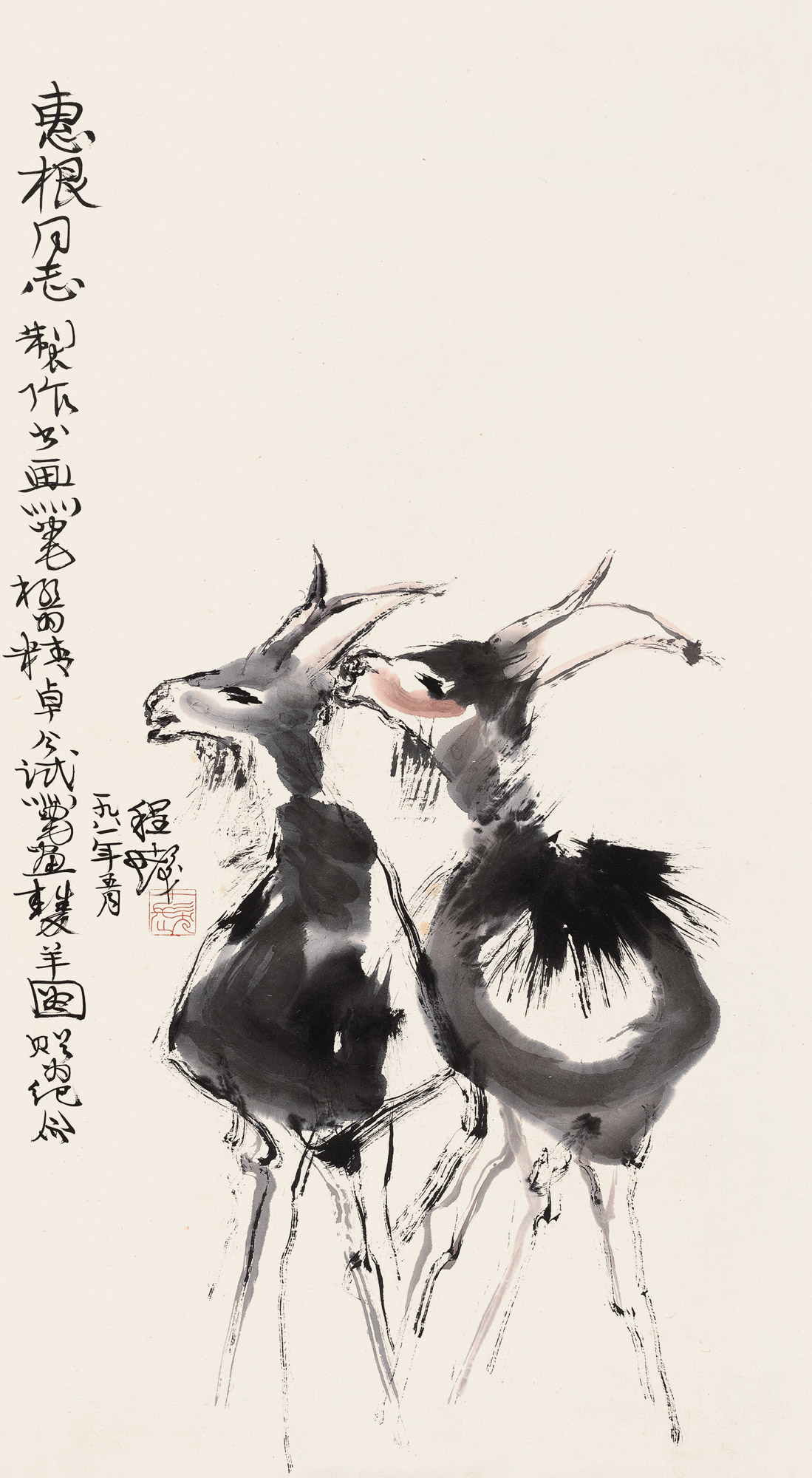 Lot 511 1981年作 双羊图 立轴 设色纸本