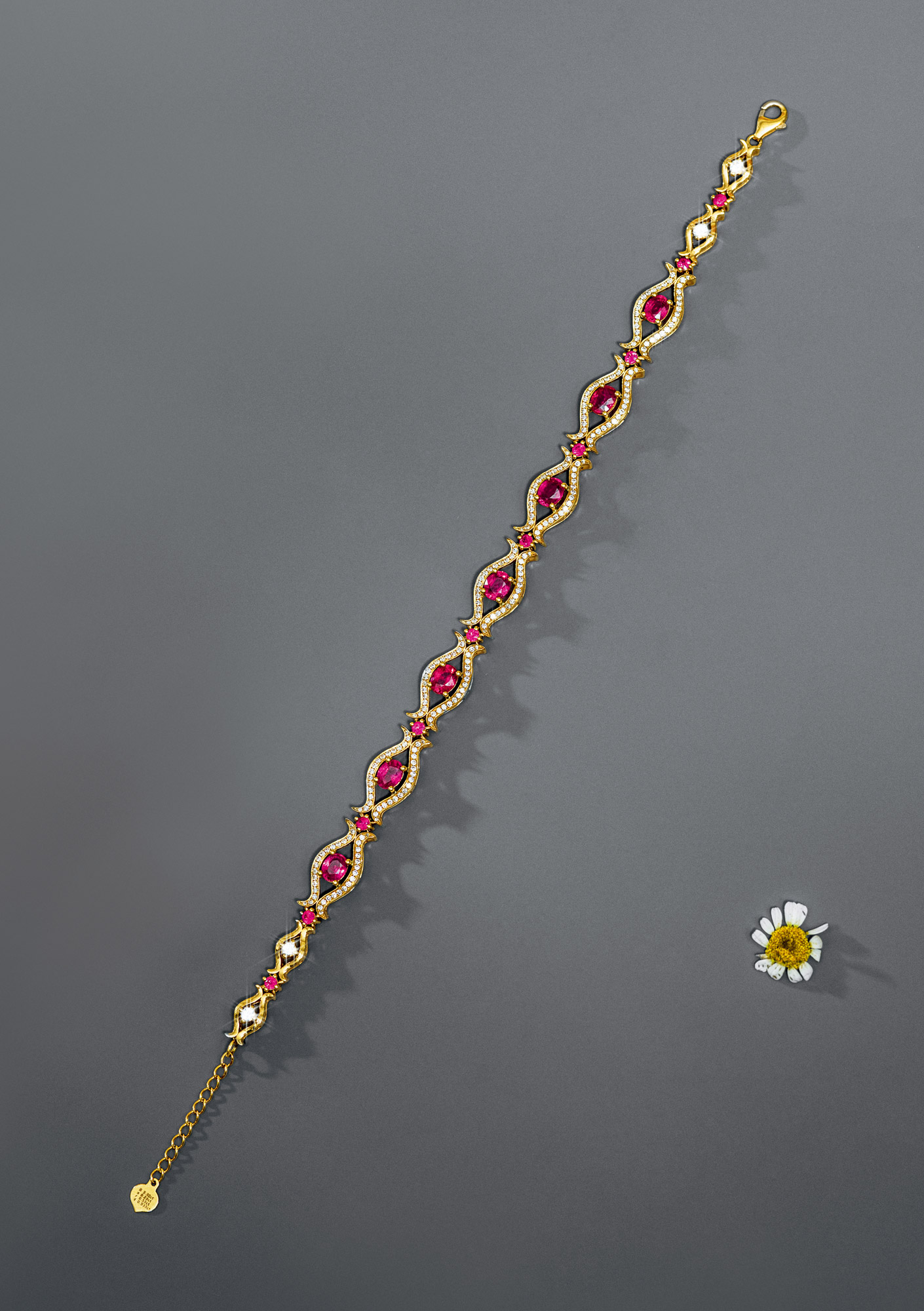 Lot 1185 3.32克拉红宝石钻石手链
