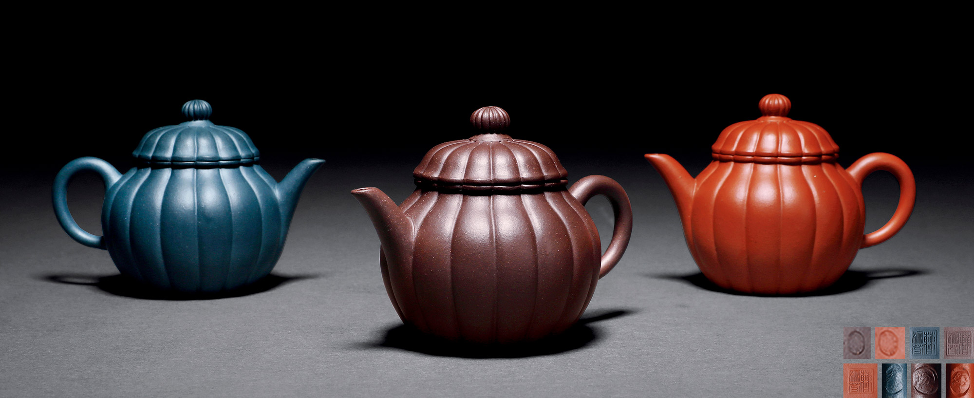Lot 789 当代 曹婉芬制 三色圆条壶组