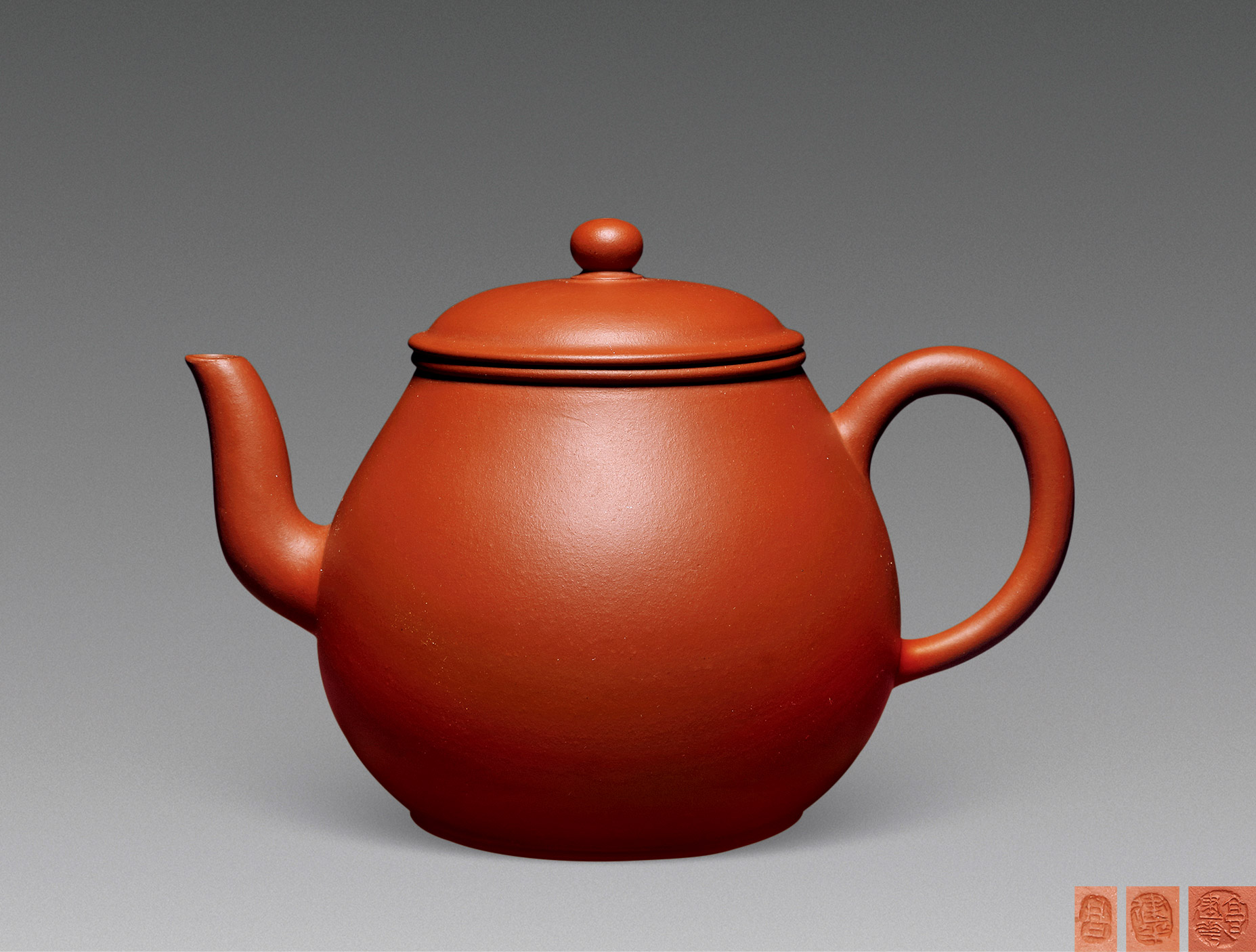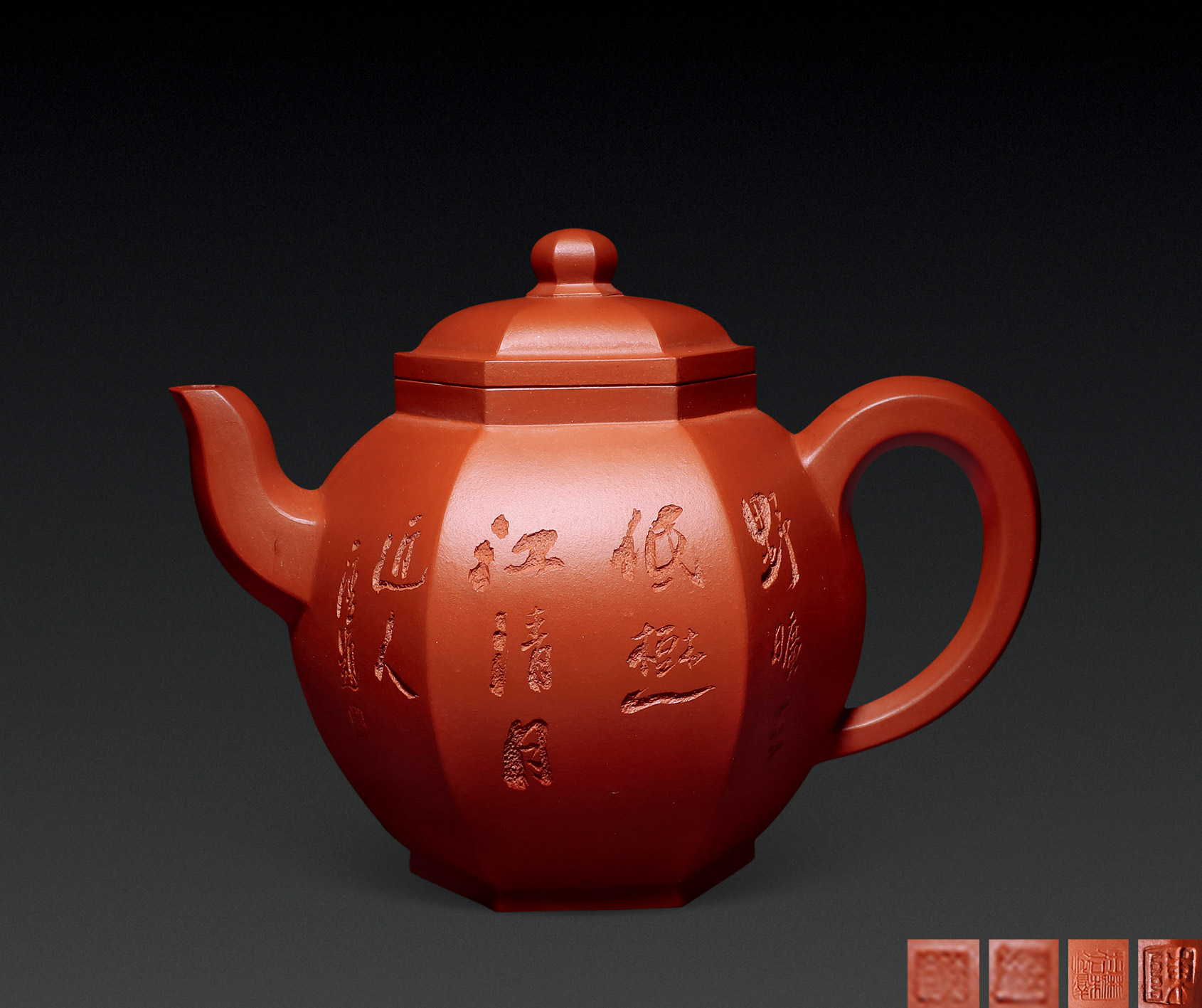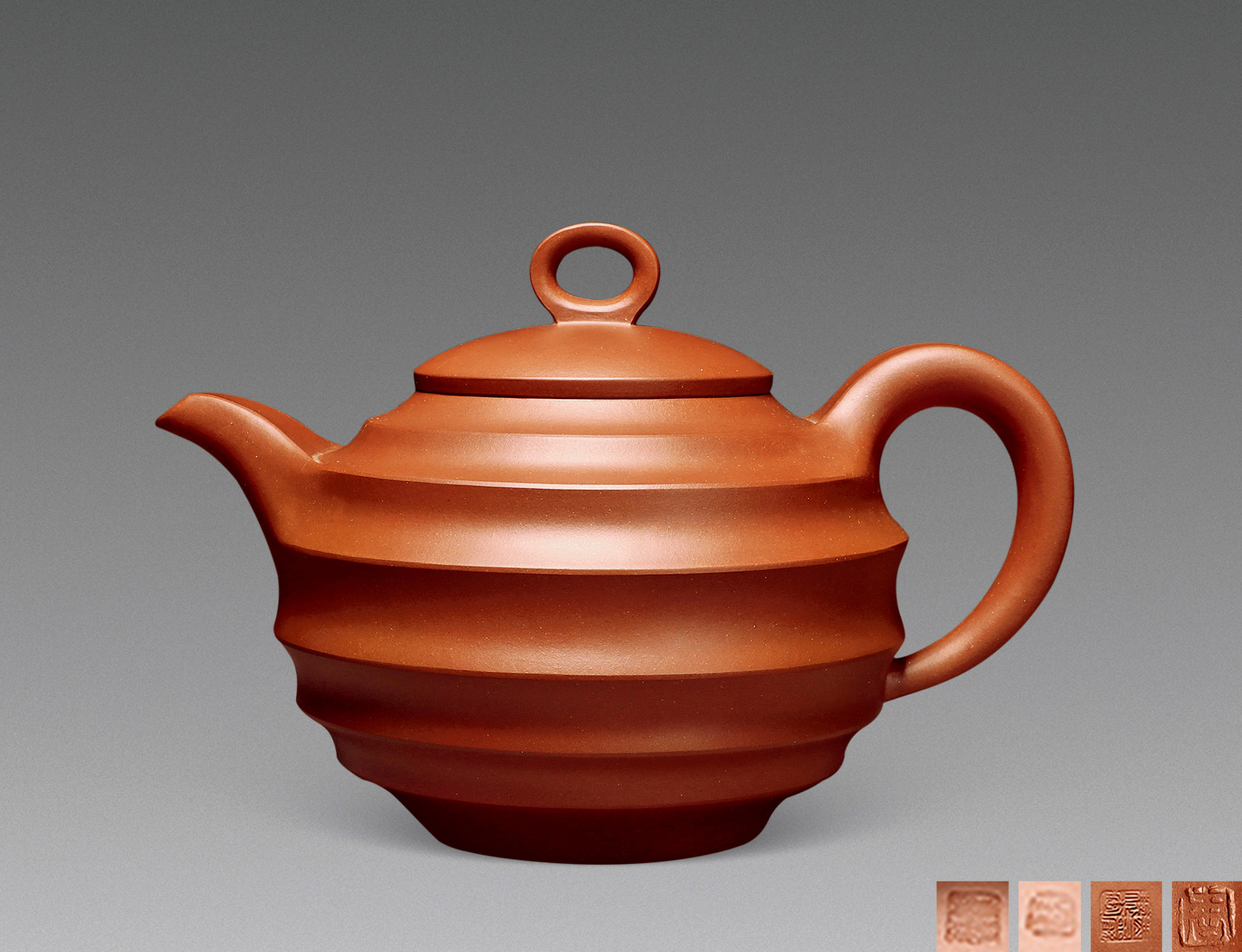 Lot 772 当代 汤瑜制 大红袍朱泥 大彬宫灯壶