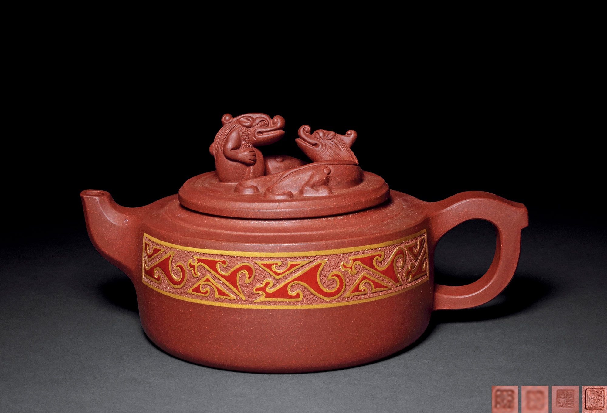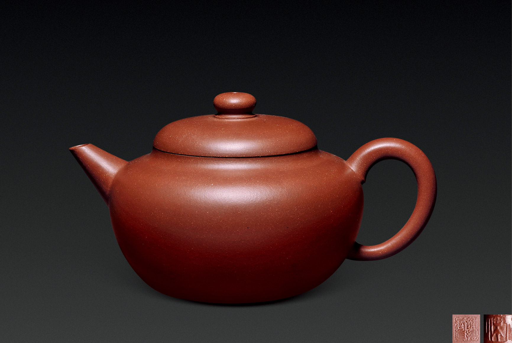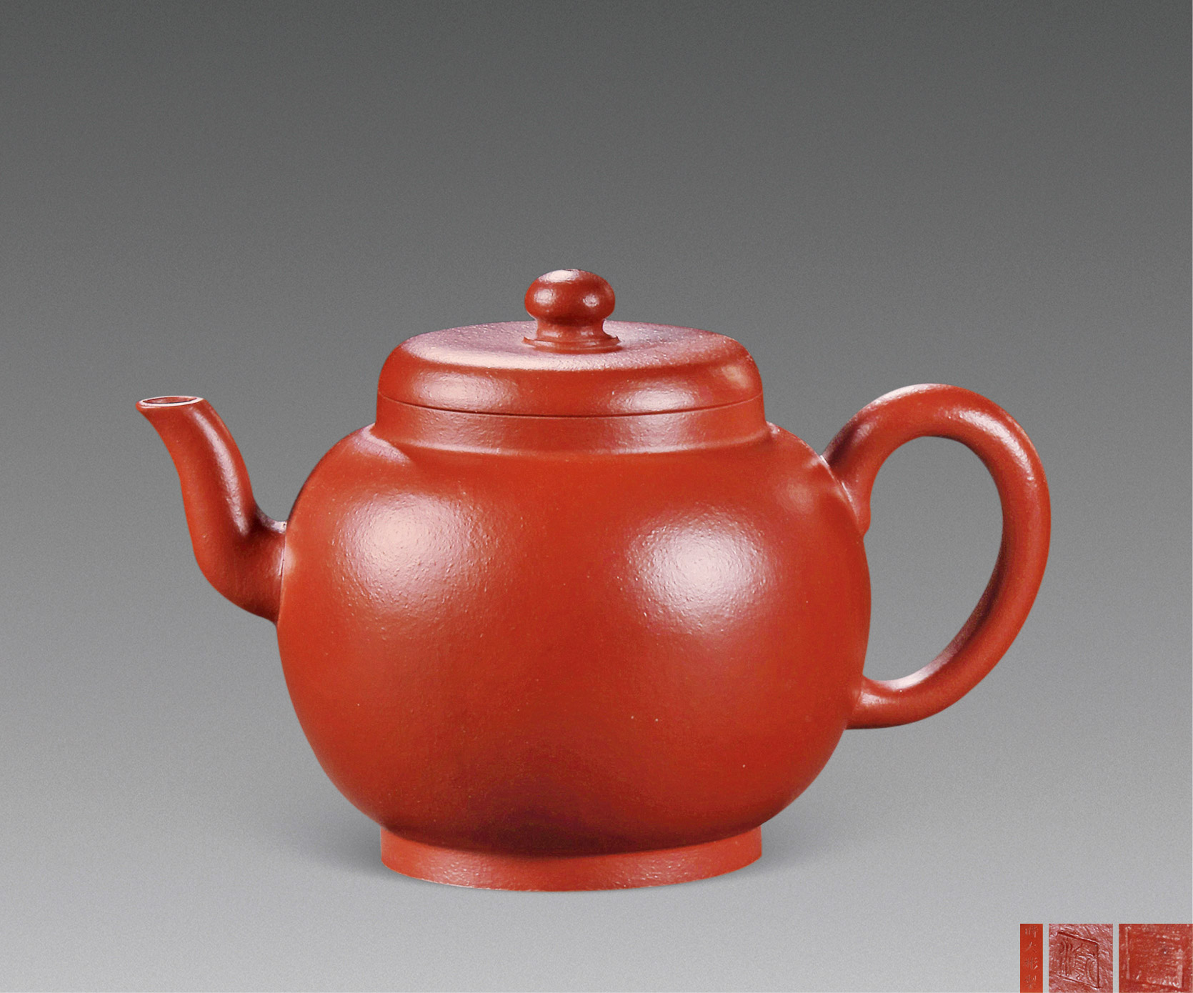 Lot 771 当代 郑丽霞制 大红袍朱泥伴月壶