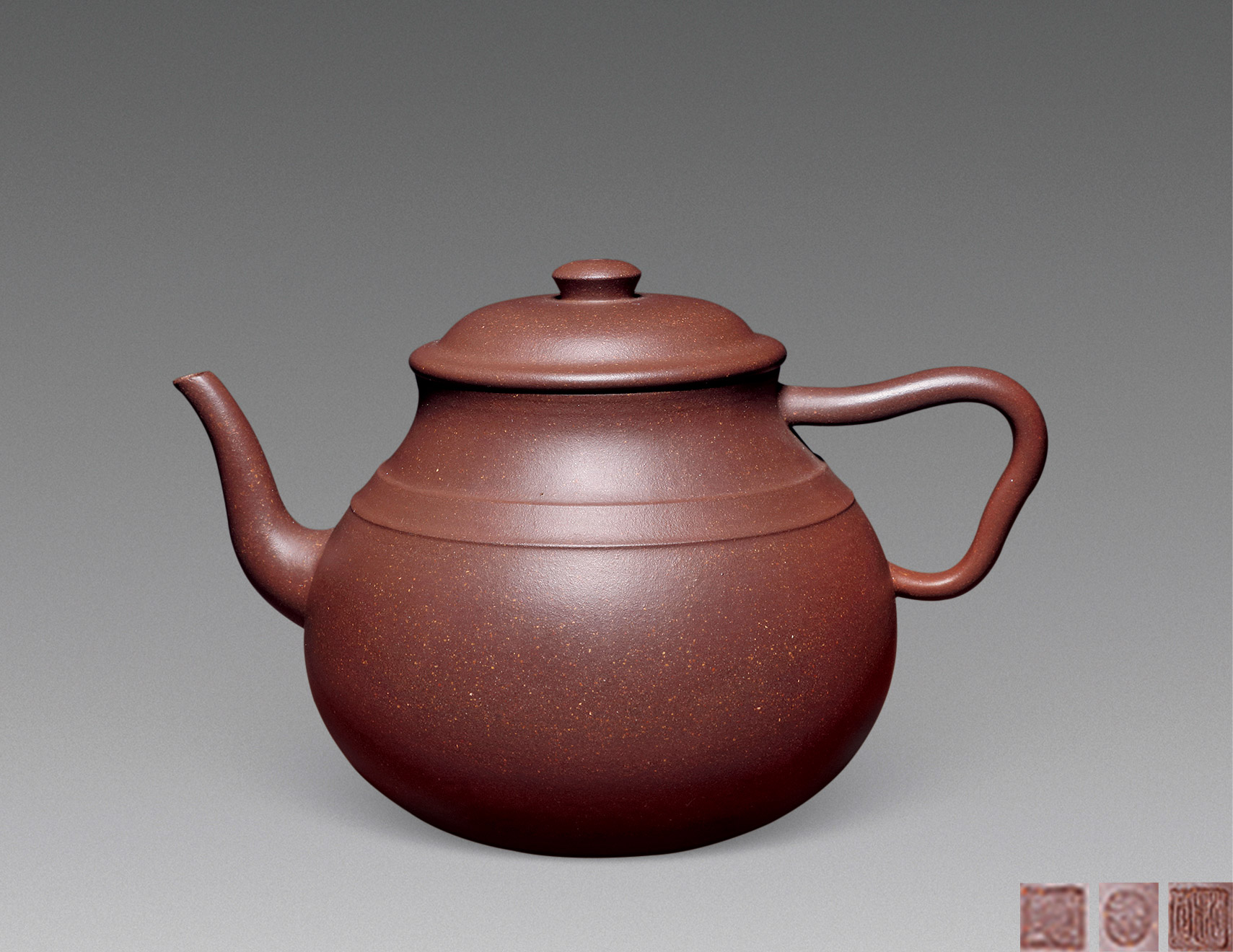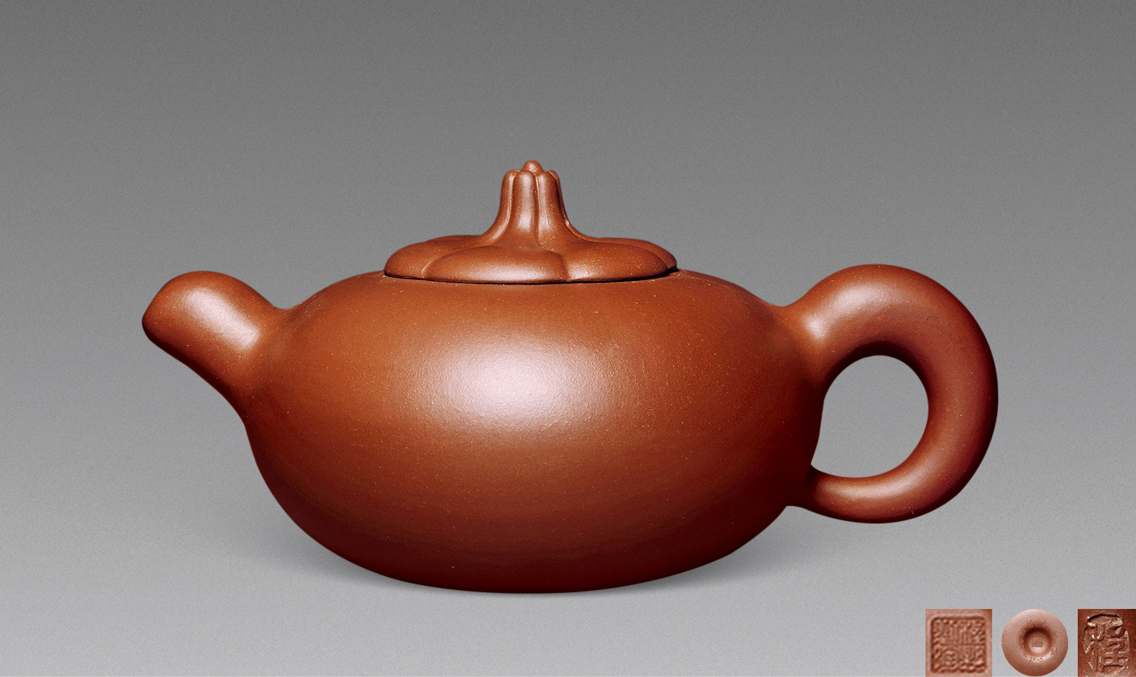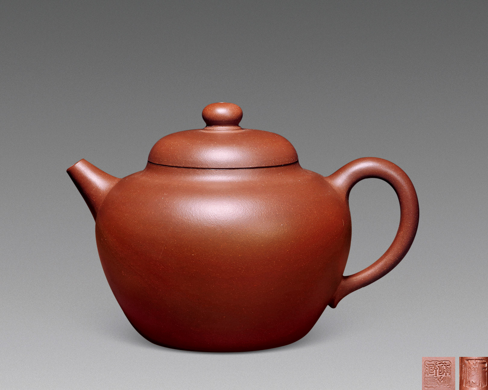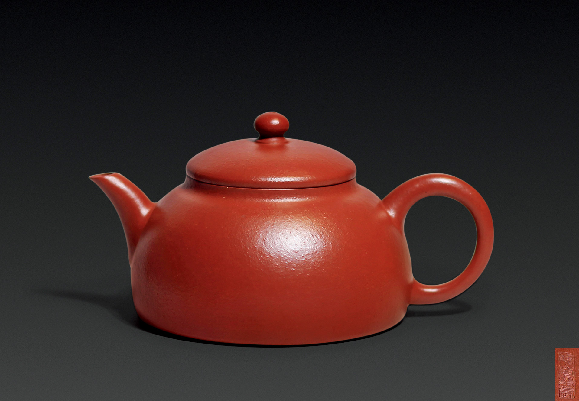 Lot 771 当代 郑丽霞制 大红袍朱泥伴月壶