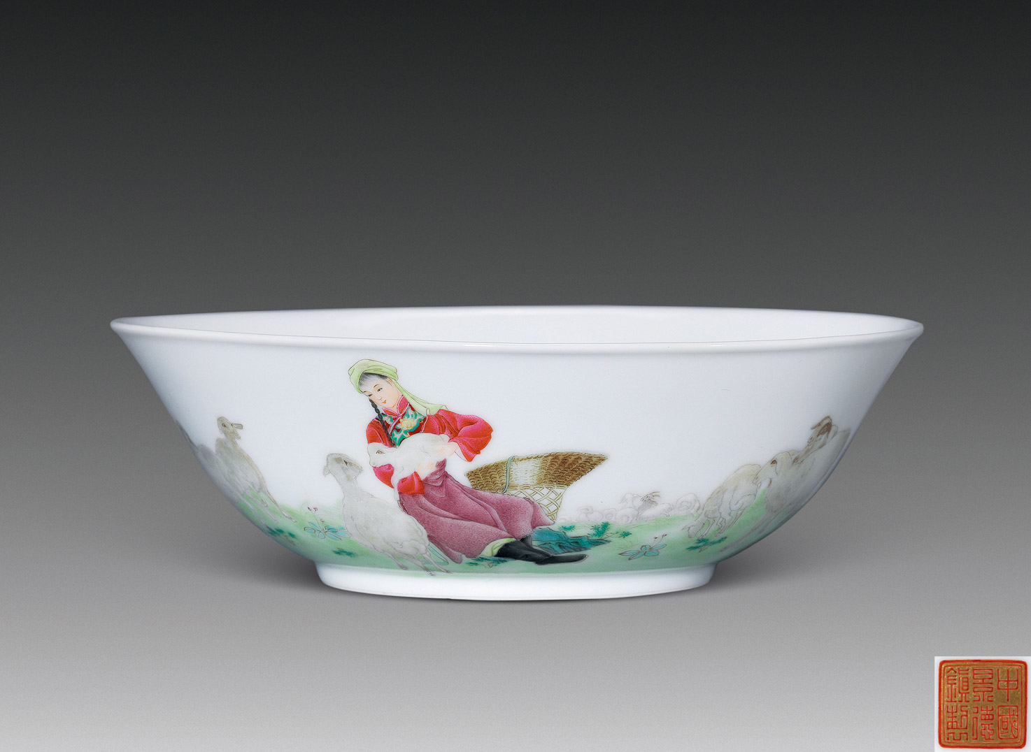Lot 1032 粉彩 草原小姐妹碗