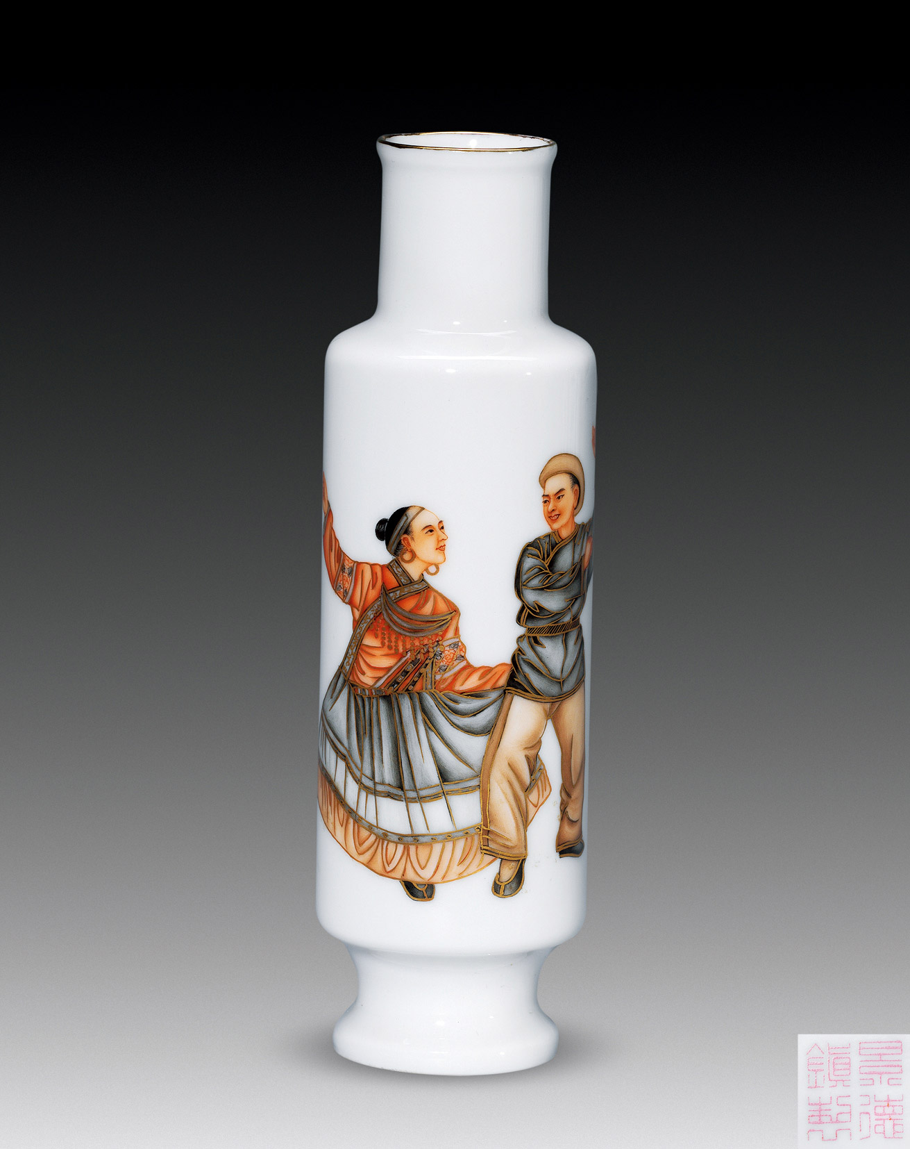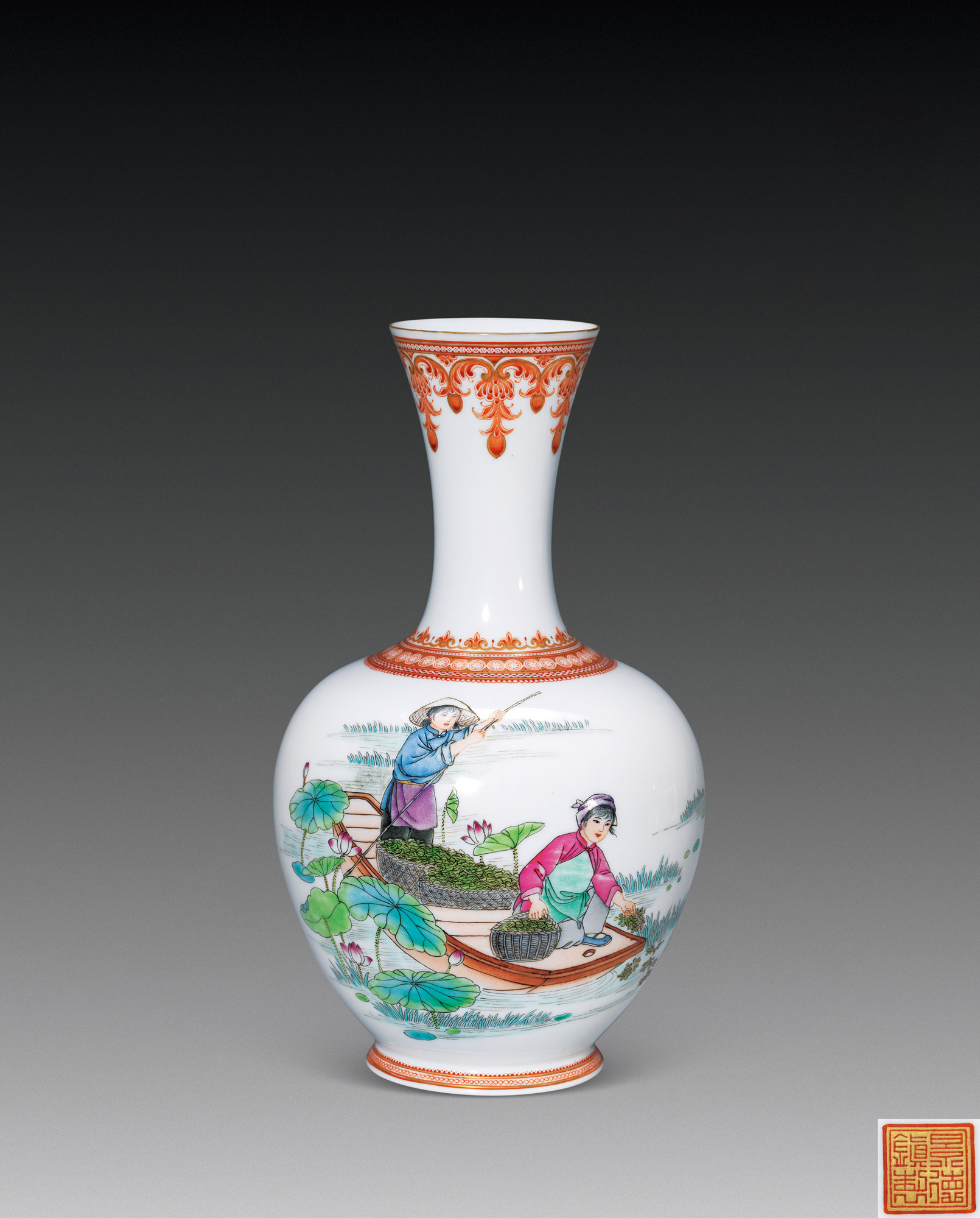 Lot 1037 粉彩 采菱图薄胎瓶