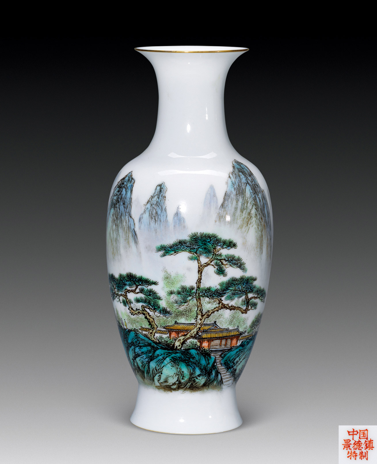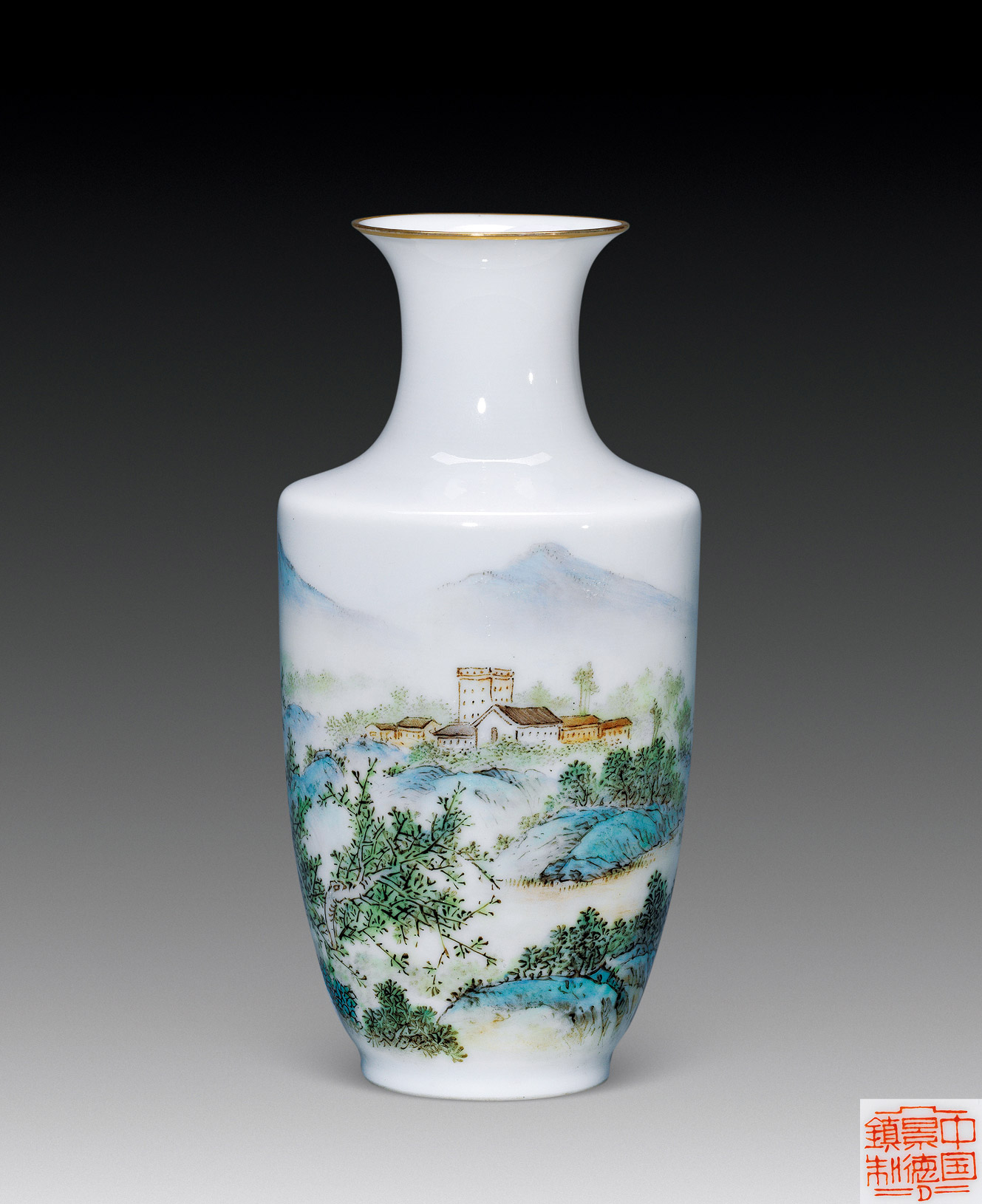 Lot 1040 粉彩 山水薄胎瓶