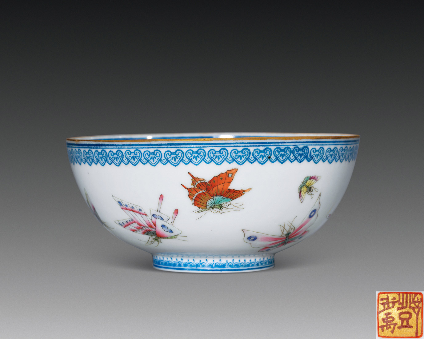 Lot 1029 粉彩 群蝶图薄胎碗