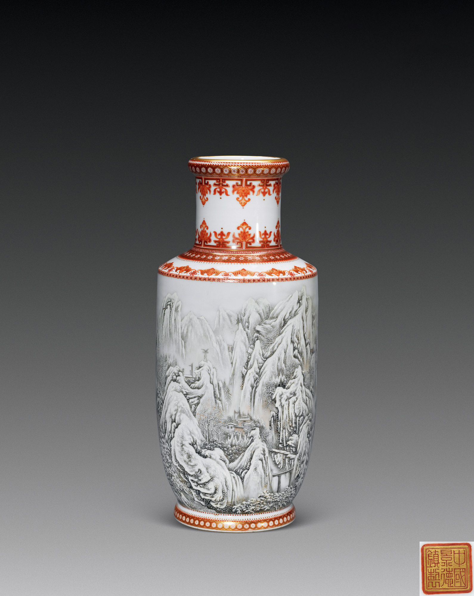 Lot 1038 粉彩 雪景山水瓶