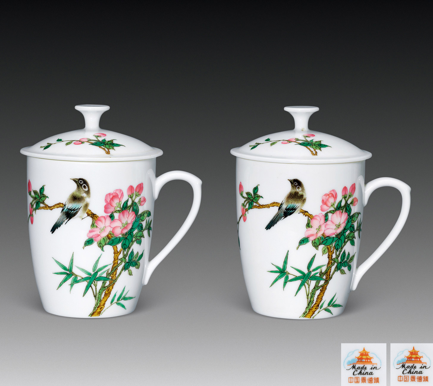 Lot 1031 粉彩 花鸟杯子一对
